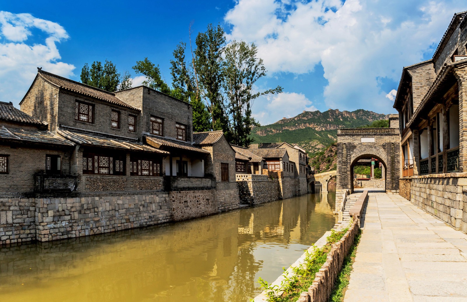 古北水鎮(zhèn)位于北京市密云區(qū)古北口鎮(zhèn),坐落在司馬臺(tái)長(zhǎng)城腳下。古北口自古以雄險(xiǎn)著稱,有著優(yōu)越的軍事地理位置,《密云縣志》上描述古北口“京師北控邊塞,順天所屬以松亭、古北口、居庸三關(guān)為總要,而古北為尤沖”。古北口以其獨(dú)特的軍事文化吸引了無(wú)數(shù)文人雅士,蘇轍、劉敞、納蘭性德等文詞大家在此留下了許多名文佳句,更有康熙、乾隆皇帝多次贊頌,以“地扼襟喉趨溯漠,天留鎖鑰枕雄關(guān)”來(lái)稱頌它地勢(shì)的險(xiǎn)峻與重要。