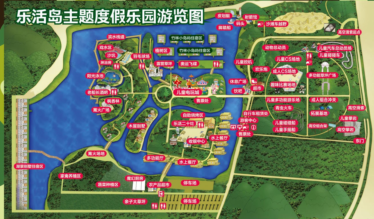 樂(lè)園以風(fēng)光旖旎的太湖為依托,周邊景區(qū)密布,屬太湖度假休閑板塊,區(qū)域優(yōu)勢(shì)明顯。樂(lè)活島以水鄉(xiāng)園林、鄉(xiāng)村景觀為主題,匯集時(shí)下流行元素,承接各類(lèi)培訓(xùn)及休閑度假需求,是融參與性觀賞性?shī)蕵?lè)性、休閑健身于一體的主題度假樂(lè)園。 蘇州樂(lè)活島主題度假樂(lè)園秉承“健康、快樂(lè)、低碳、休閑”的經(jīng)營(yíng)理念,本著返璞歸真的宗旨,充分實(shí)現(xiàn)人與自然的和諧相處。游樂(lè)項(xiàng)目及特色農(nóng)家食宿是樂(lè)活島的主體旅游資源,樂(lè)園引進(jìn)叢林越野、奧運(yùn)飛碟、高空滑索、高空攀巖、射箭、真人CS野戰(zhàn)、皮劃艇等一大批新鮮、刺激的游樂(lè)設(shè)施;讓你上天入地,玩興大發(fā)。