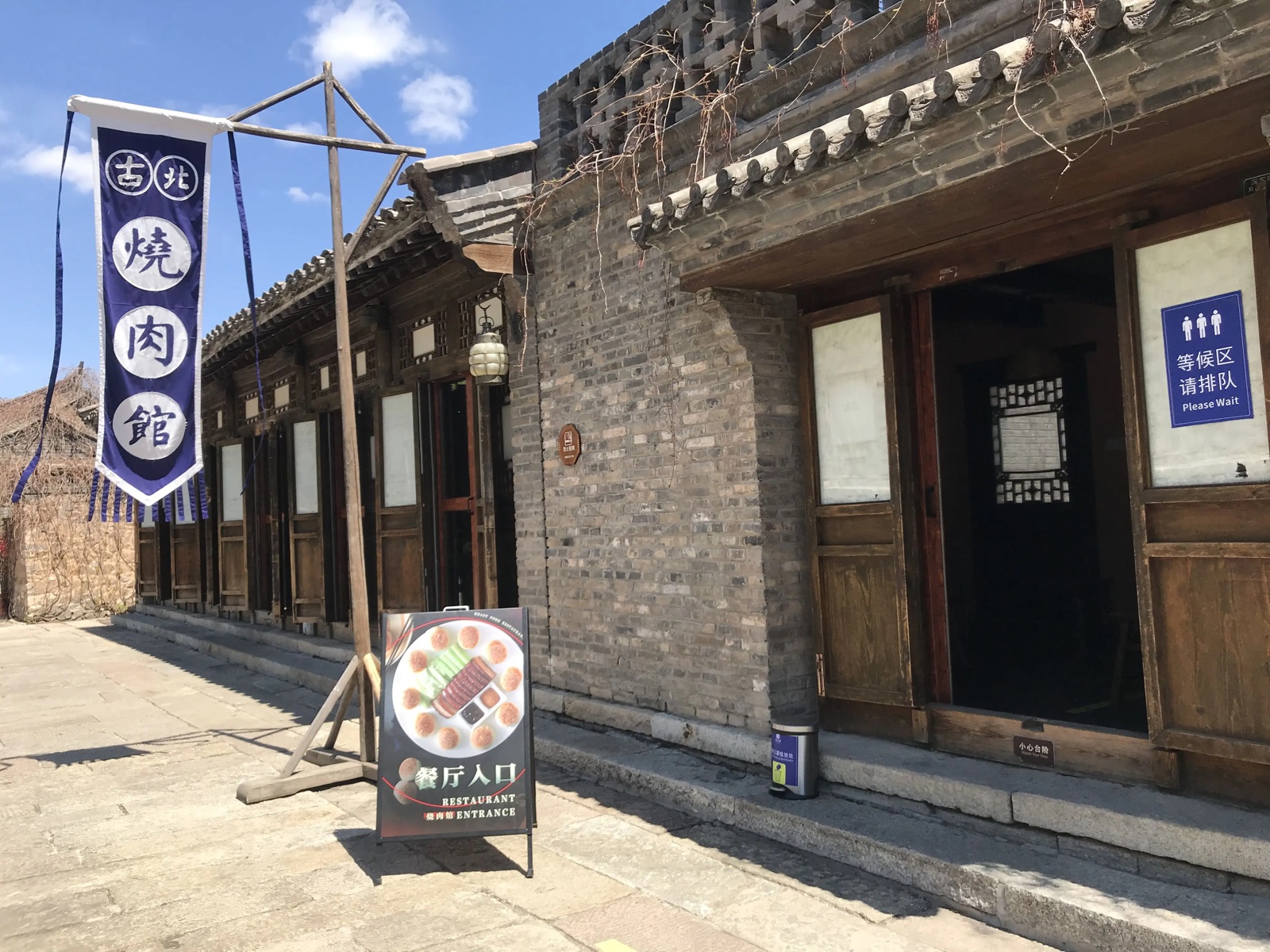古北水鎮(zhèn)燒肉館坐落于司馬臺(tái)長(zhǎng)城腳下,依河臨街。在那古色古香滲透著千年韻味的門(mén)扉、石板路和小木船的襯托下,全木建造的餐廳顯得厚重古撲,暖暖的色調(diào)給人帶來(lái)一份溫暖舒適的浪漫色彩。燒肉館在水鎮(zhèn)的東北角,離古北之光酒店、城上溫泉館比較近,也離長(zhǎng)城比較近。